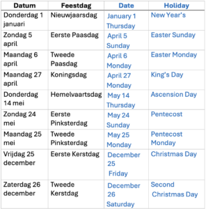 Om u niet voor een dichte deur te laten staan, hieronder de sluitingsdagen van Strabeko in 2026. Staat uw geplande dag er niet tussen, dan bent u welkom elke dag (behalve in het weekeinde dan zijn we ook gesloten en tijdens onze zomersluiting) tussen 08.00 uur en 17.00 uur voor het laden en lossen. Graag tot dan !
